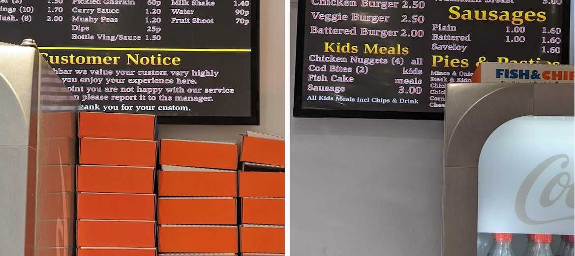 Discover Tony's Fish and Chips Takeaway in Dover for the best crispy cod and chips at unbeatable prices. Enjoy our delicious battered favorites, boxed for perfect delivery. Happy customers rave about our mouthwatering pies and top-notch service. Visit us at 76 London Rd, or call +44 1304 205524 for a taste of satisfaction!